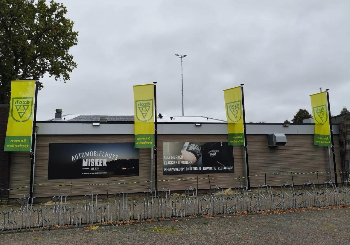 Ons sportpark is weer een stukje mooier geworden dankzij quickreclame ! Aan de voorzijde van de kantine zijn vier prachtige vlaggenmasten met ons eigen logo geplaatst💛💚 Daarnaast heeft automobielhuysmisker een prominente plek in de uitsparingen van onze kantine! Dank aan alle sponsoren die bijdragen aan onze prachtige vereniging! samentrefzeker🔰