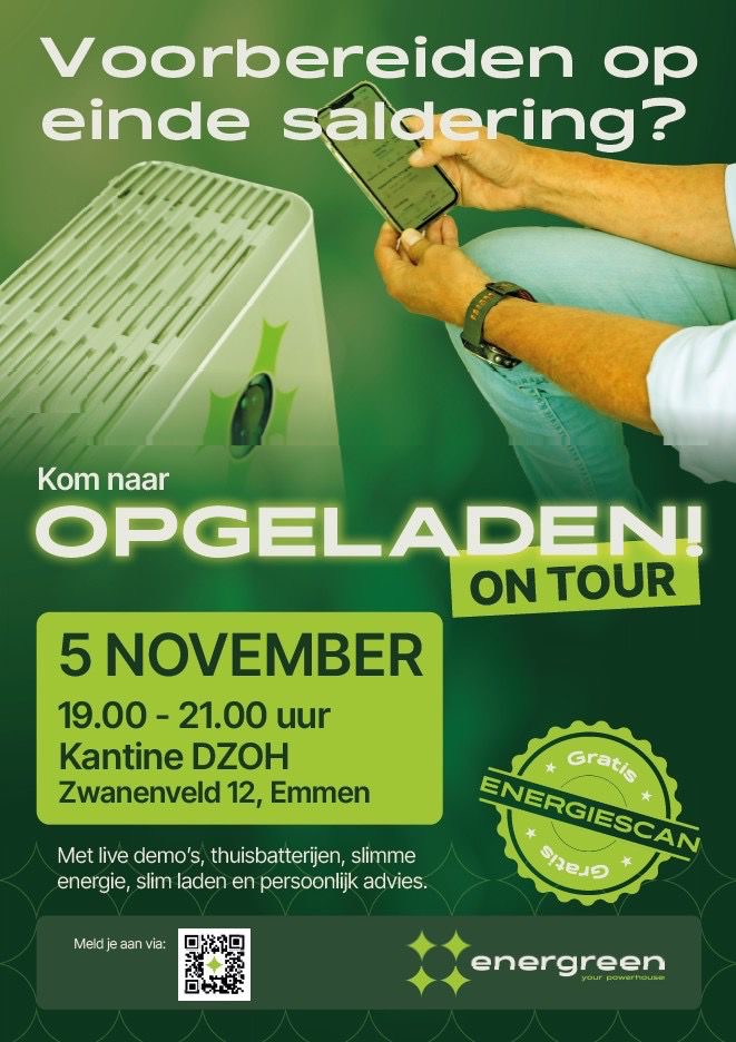 Schrijf je hier in voor de infoavond. https://www.energreen.com/nl-NL/events/opgeladen-on-tour-1-dzoh-emmen